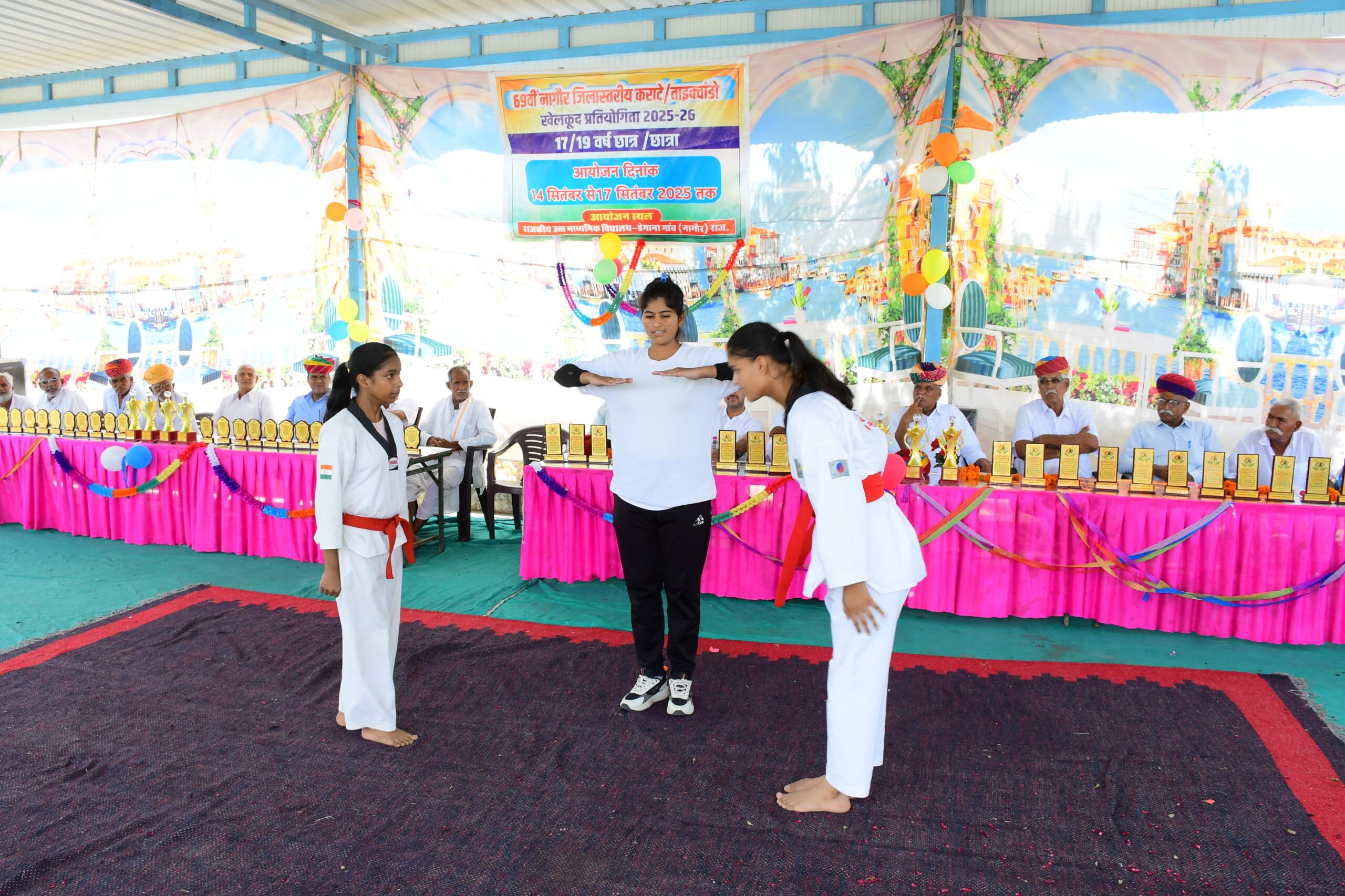 डेगाना गांव में 14 सितंबर से 17 सितंबर तक आयोजित 69वीं जिला स्तरीय ताइक्वांडो और कराटे प्रतियोगिता 2025-26 का बुधवार को भव्य समापन हुआ। चार दिनों तक चले इस खेल महाकुंभ में जिलेभर के सैकड़ों खिलाड़ी और शिक्षण संस्थानों की टीमें भाग लेने पहुँचीं। प्रतियोगिता के अंतिम दिन विजेताओं को सम्मानित किया गया।