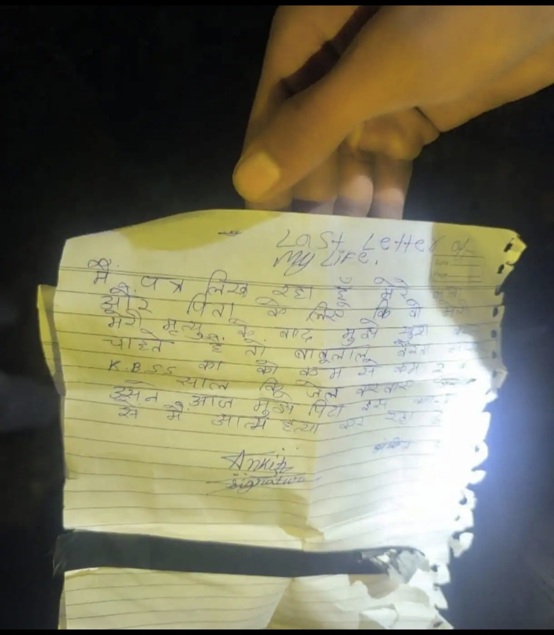 छात्र के पास से मिला कथित सुसाइड नोट इस घटना को और गंभीर बना देता है। नोट में अंकित ने लिखा है—
