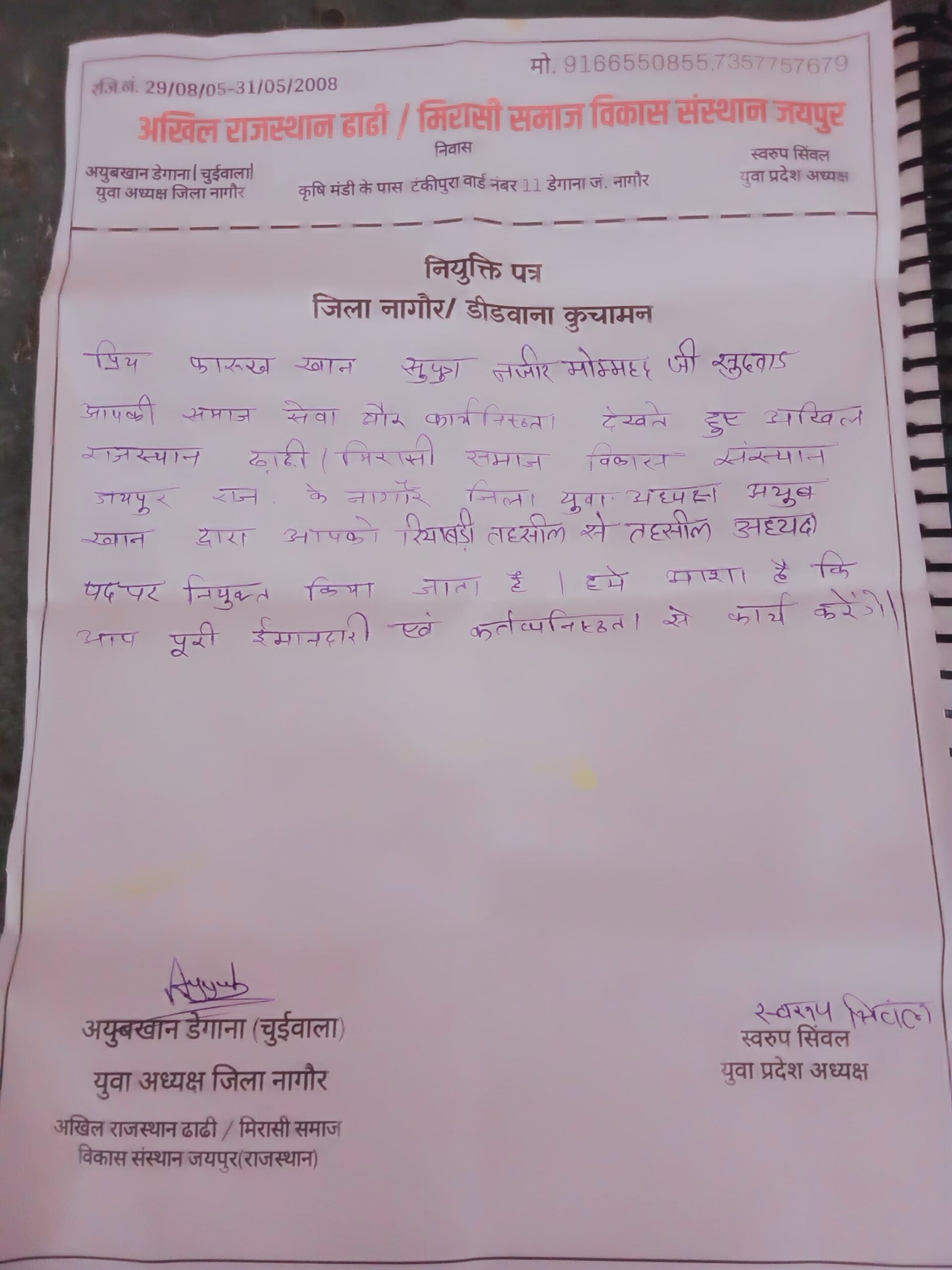 अखिल राजस्थान मुस्लिम मिरासी समाज महासभा: फारुक मोहम्मद सूदवाड़ बने रियांबड़ी तहसील अध्यक्ष