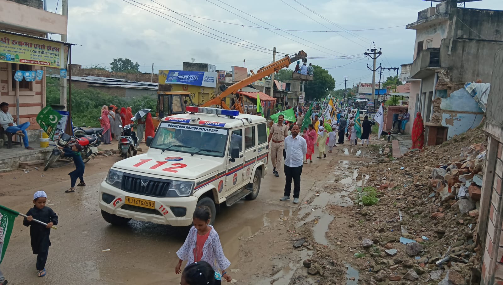 जुलूस के दौरान प्रशासन और पुलिस की ओर से विशेष इंतजाम किए गए। थाना अधिकारी भारमल चौधरी, चौकी प्रभारी सीताराम, नरेंद्र सहित पुलिस जवान पूरे रास्ते मुस्तैदी से डटे रहे। मुख्य मार्गों पर पुलिस दल की ओर से कई बार पेट्रोलिंग कर यातायात को नियंत्रित किया गया, जिससे श्रद्धालुओं को किसी प्रकार की असुविधा न हो।