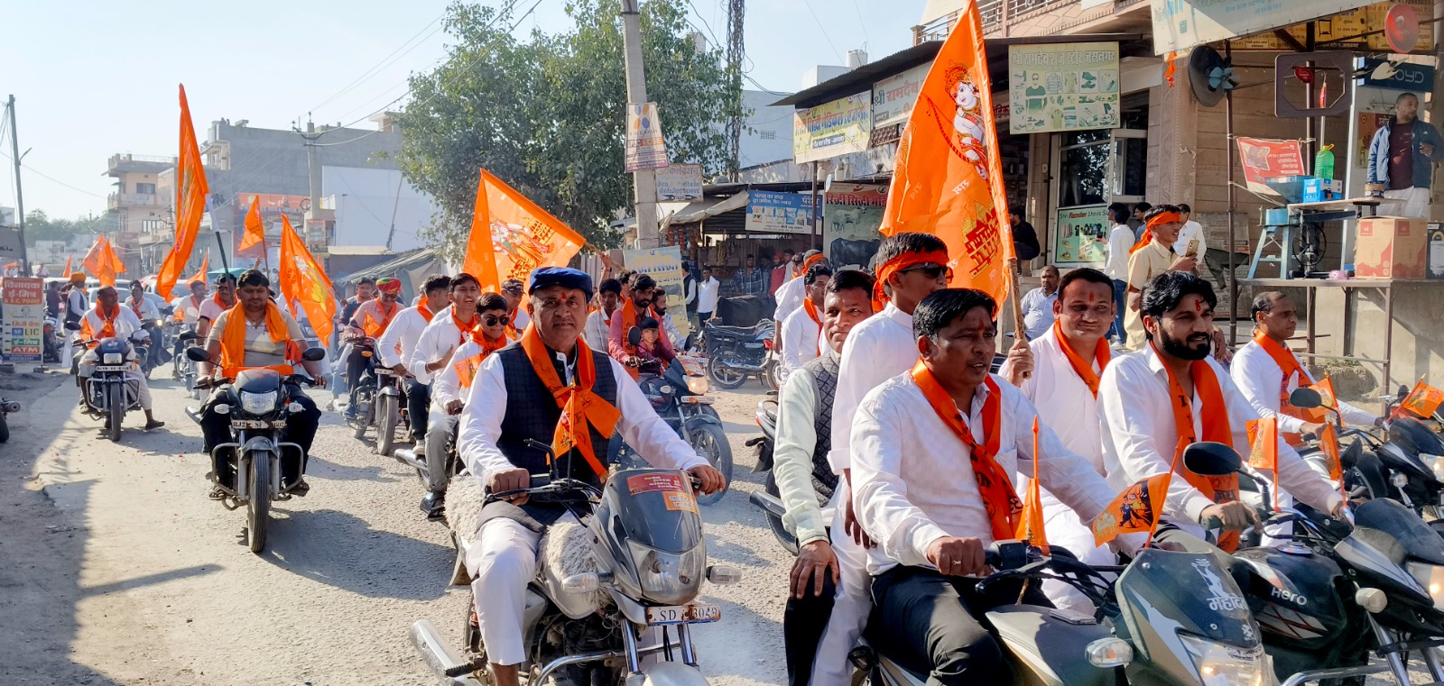 रैली में डीजे, ढोल और नगाड़ों की गूंज के बीच रामभक्तों की परंपरागत वेशभूषा मुख्य आकर्षण रही। पुरुष केसरिया साफे के साथ कुर्ता-पायजामा पहने नजर आए, वहीं मातृशक्ति केसरिया साड़ियों में और बाल वाहिनी के सदस्य भी केसरिया साफा धारण कर रैली में शामिल हुए। हाथों में भगवा ध्वज लिए श्रद्धालु “जय श्रीराम” के जयकारे लगाते चल रहे थे।