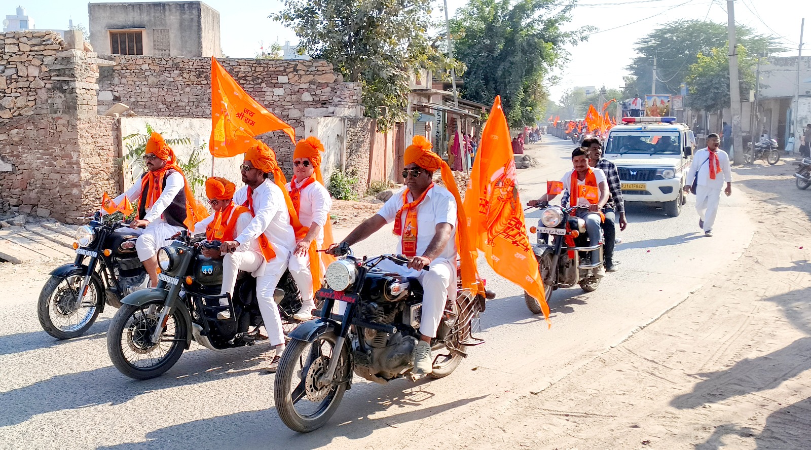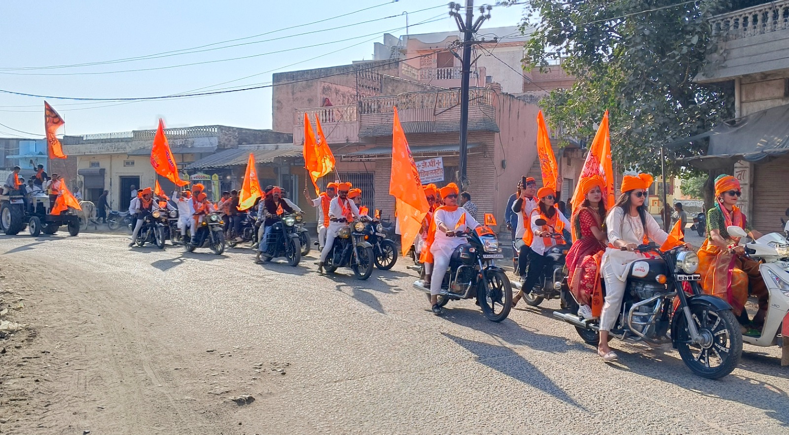 रैली में डीजे, ढोल और नगाड़ों की गूंज के बीच रामभक्तों की परंपरागत वेशभूषा मुख्य आकर्षण रही। पुरुष केसरिया साफे के साथ कुर्ता-पायजामा पहने नजर आए, वहीं मातृशक्ति केसरिया साड़ियों में और बाल वाहिनी के सदस्य भी केसरिया साफा धारण कर रैली में शामिल हुए। हाथों में भगवा ध्वज लिए श्रद्धालु “जय श्रीराम” के जयकारे लगाते चल रहे थे।