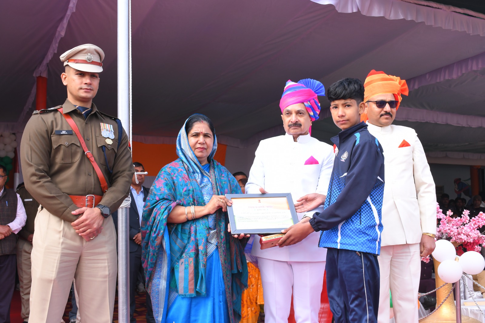 मुख्य अतिथि राज्यमंत्री बाघमार व जिला कलक्टर अरुण कुमार पुरोहित, जिला पुलिस अधीक्षक मृदुल कच्छावा ने विभिन्न क्षेत्रों में उत्कृष्ट एवं उल्लेखनीय सेवाओं के लिए 89 महानुभावों को प्रशंसा पत्र प्रदान कर सम्मानित किया। इससे पूर्व अतिरिक्त जिला कलक्टर चंपालाल जीनगर ने राज्यपाल का संदेश पढ़कर सुनाया।