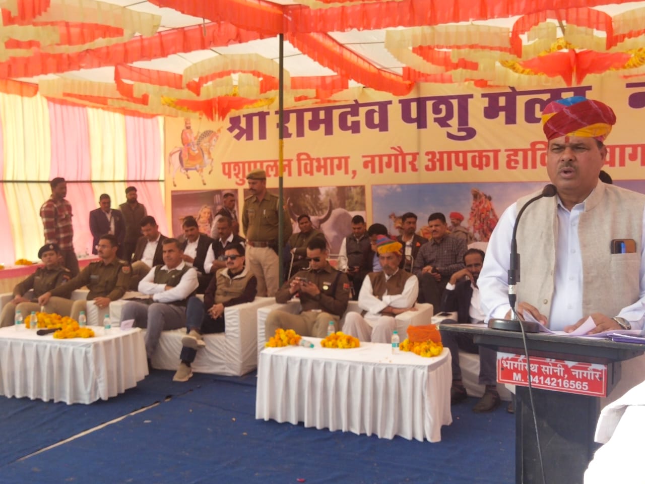 अध्यक्षीय संबोधन में जिला कलक्टर अरुण कुमार पुरोहित ने कहा कि नागौर पशु मेला जिले की आर्थिक और सांस्कृतिक पहचान है, जिसकी ख्याति राज्य ही नहीं बल्कि देश-विदेश तक फैली हुई है। इस मेले से पशुपालकों, व्यापारियों, कलाकारों और श्रमिकों की आजीविका जुड़ी हुई है। उन्होंने कहा कि समय के साथ परिवर्तन जरूर आया है, लेकिन मेले की उपयोगिता आज भी उतनी ही प्रासंगिक है। बाबा रामदेव जी महाराज के नाम से आयोजित यह मेला सामाजिक सौहार्द और एकता का प्रतीक है।