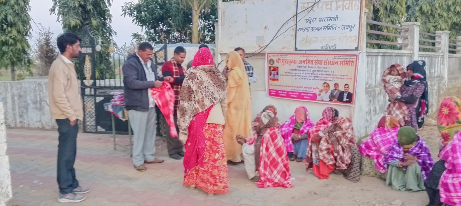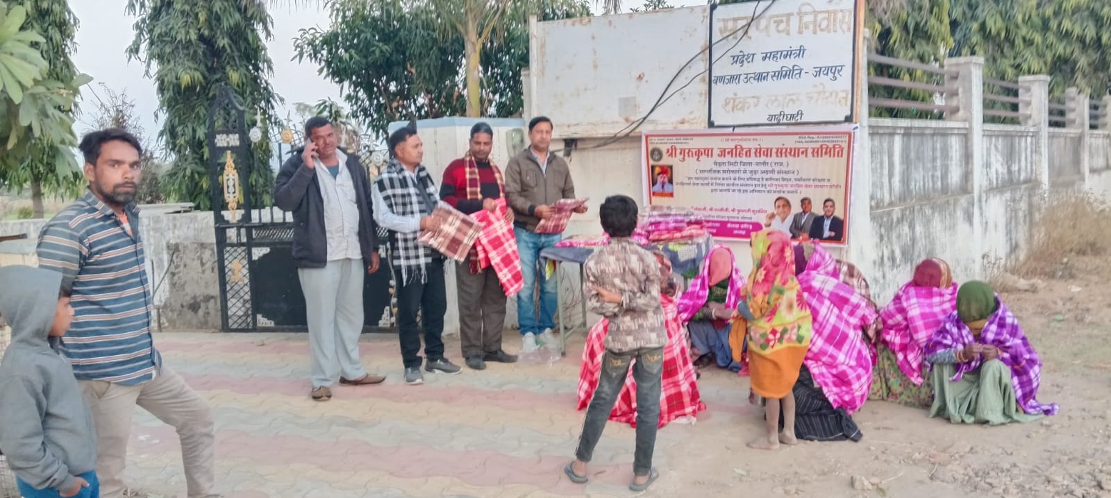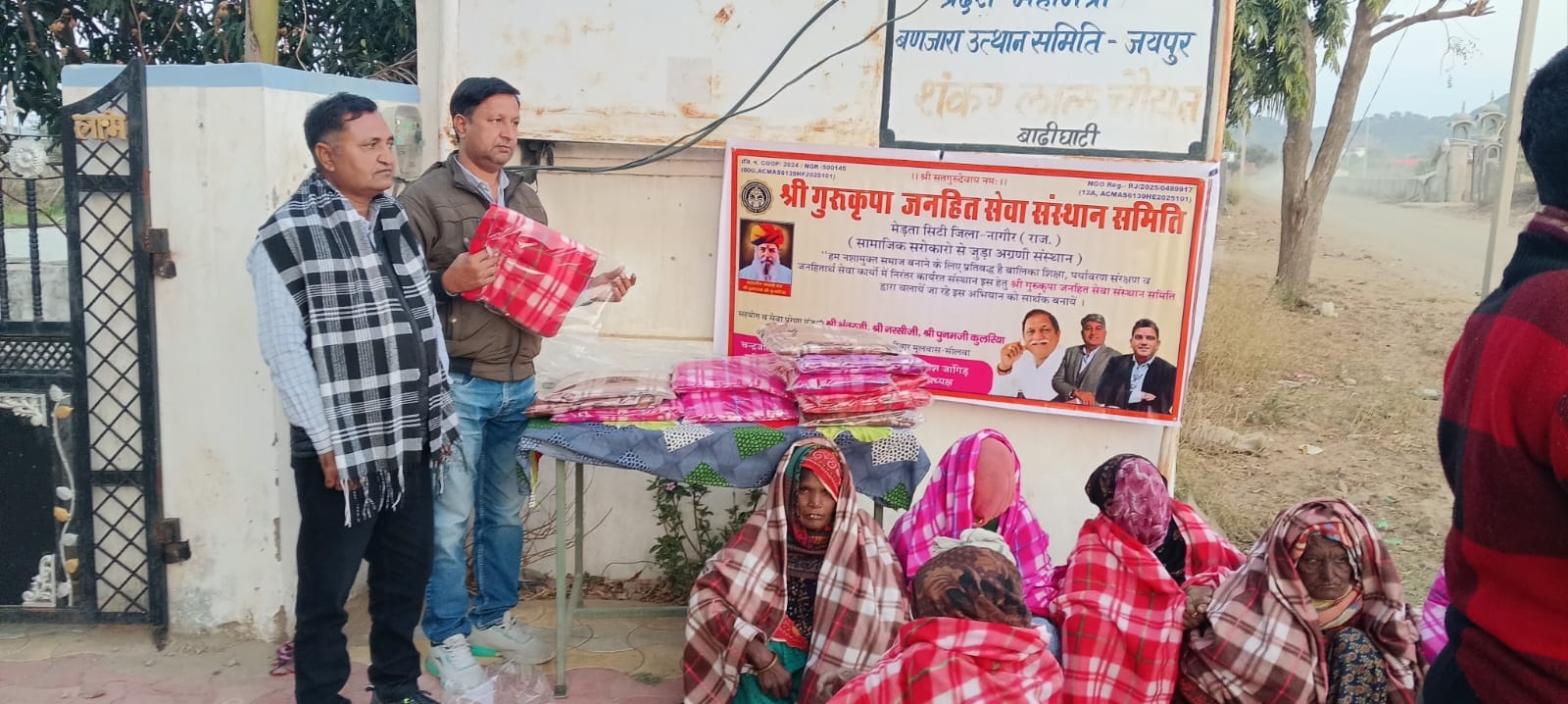 थांवला। कड़ाके की ठंड के बीच असहाय और जरूरतमंद लोगों को राहत पहुंचाने के उद्देश्य से श्री गुरु कृपा जनहित सेवा संस्थान द्वारा बाड़ीघाटी क्षेत्र में कंबल वितरण कार्यक्रम का आयोजन किया गया। यह सेवा कार्य भामाशाह नरसी कुलरिया के सहयोग से संपन्न हुआ, जिसमें अब तक पूरे मेड़ता क्षेत्र में 600 से अधिक जरूरतमंदों को गर्म कंबल वितरित किए जा चुके हैं।