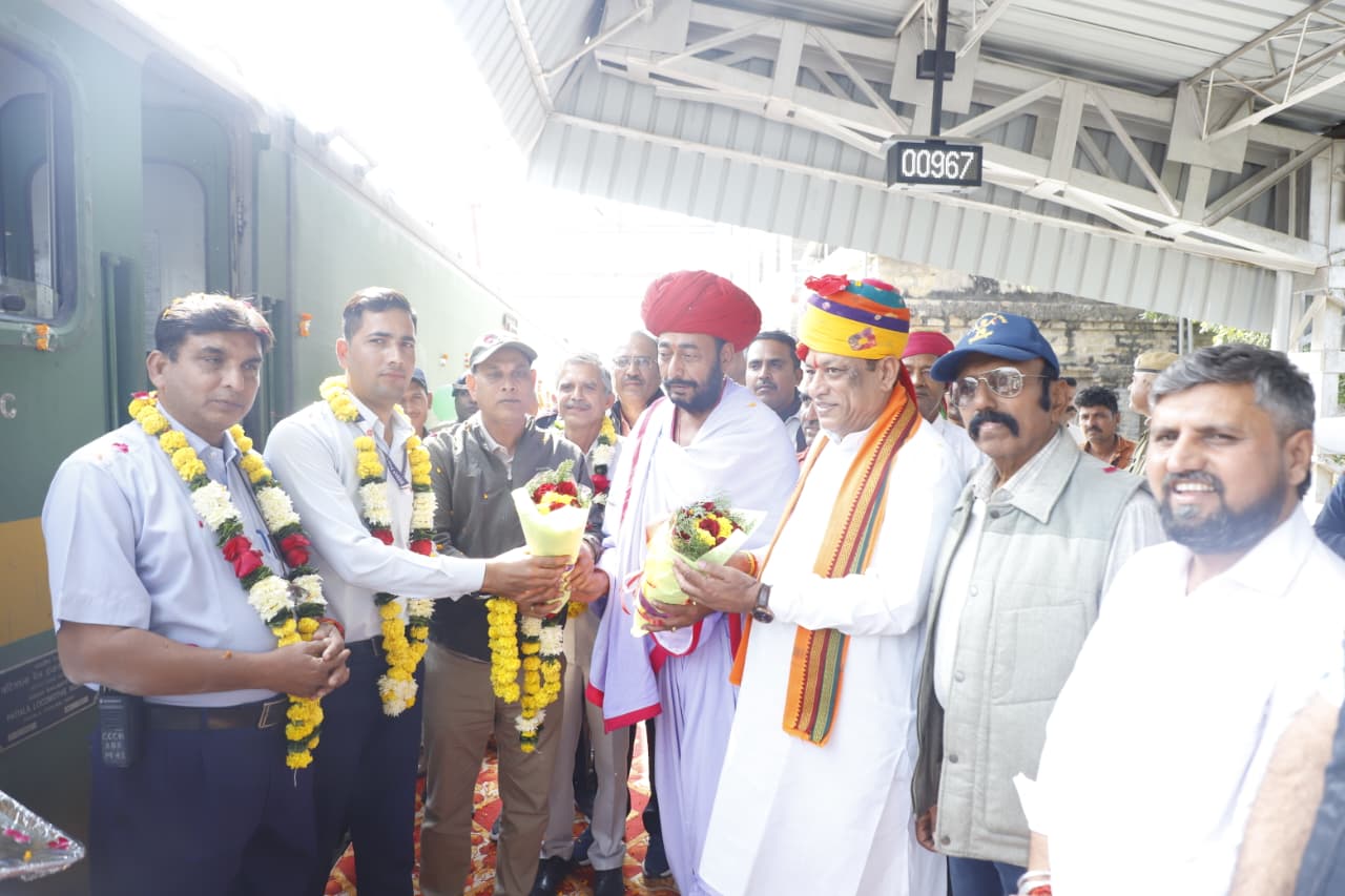जयपुर, 24 नवंबर 2025। राजस्थान में वरिष्ठ नागरिकों के लिए चलाई जा रही देवस्थान विभाग की महत्वाकांक्षी वरिष्ठ नागरिक तीर्थ यात्रा योजना 2025 के तहत सोमवार को जवाई बांध रेलवे स्टेशन से जगन्नाथ पुरी के लिए विशेष ट्रेन को देवस्थान मंत्री श्री जोराराम कुमावत ने हरी झंडी दिखाकर रवाना किया। जैसे ही ट्रेन पाली–जोधपुर रूट की ओर अग्रसर हुई, रेलवे स्टेशन पर मौजूद सैकड़ों लोगों ने तालियों और शुभकामनाओं के साथ यात्रियों को विदाई दी।